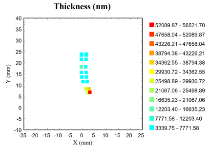 The use of small, collimated beam technology in FilmTek metrology tools is applicable to a wide range of substrates including silicon, metal, and glass. In the given example, the thickness of a nonstick coating deposited on the surface of a tissue sealer device was mapped over the metal jaw (Figure 2). FilmTek optical technology provides nanometer thickness accuracy even for film coatings that vary by many thousands of microns over the device.