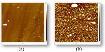 Samples were sent to the University of Liverpool’s Open Innovation Hub for Antimicrobial Surfaces for Atomic Force Microscopy (AFM) analysis. The results shown in Fig. 2 show the significant difference between the uncoated (a) and coated (b) surfaces. The uncoated sample (a) showed a smooth and featureless top surface which yielded poor results when tested for antimicrobial activity. The coated surface (b), however, depicts the nano textured topography which resulted in a LOG6 biocidal effect.